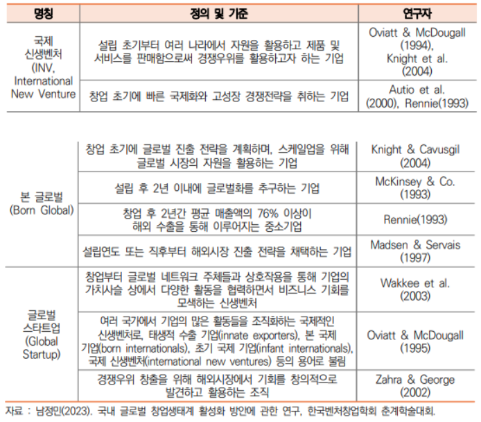 * 국제 신생벤처(INV, International New Ventures), 본 글로벌기업(Born Global Startup), 글로벌 창업 등