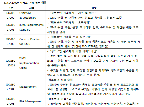 정보보안경영시스템(ISMS)을 위한 국제 표준