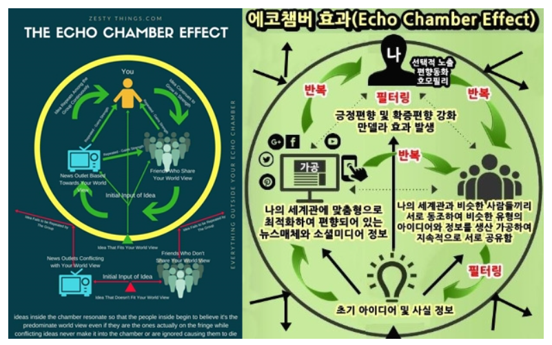 “모든 이야기에는 세 가지 측면이 있다. 당신 편, 내 편, 진실.” -로버트 에반스(영화 제작자, 1930~2019)- 에코 챔버 효과(Echo Chamber Effect)에 대해서 위키백과에는 이렇게 설명하고 있다. "뉴스 미