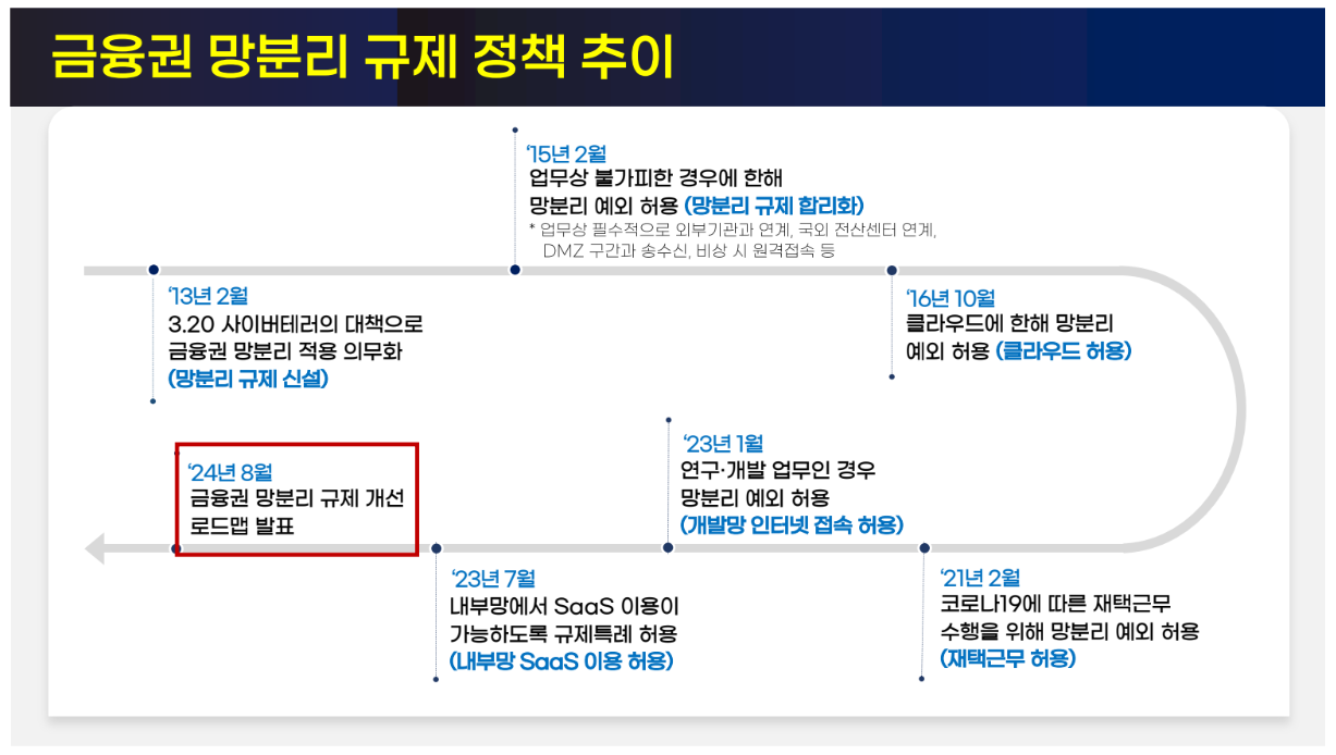 (배경) 업무망을 인터넷망과 분리하는 망분리 규제는 지난 2013년 대규모 금융 전산사고를 계기로 도입됐다.