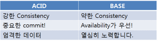 * NoSQL의 특징 (BASE, Basically Available, Soft state, Eventually Consistency)