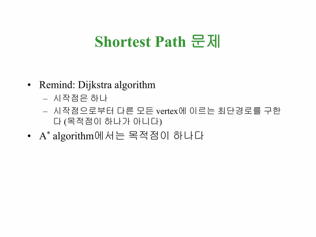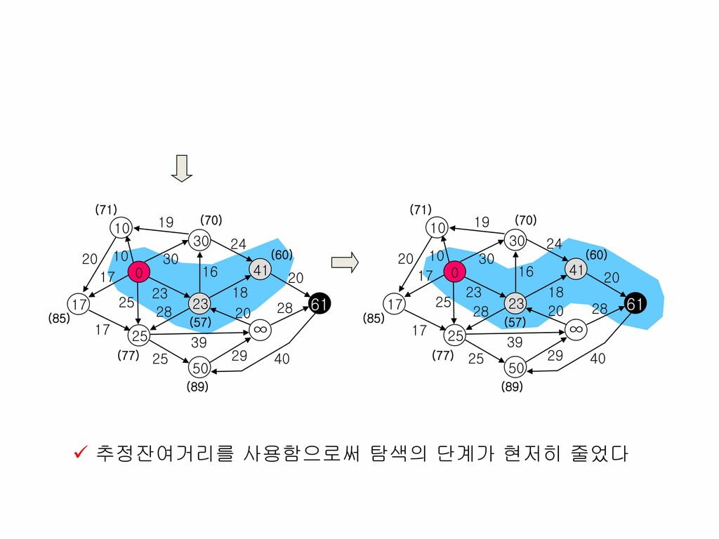 f(n) = g(n) + h(n) g(n):출발노드 ~ 현재노드n의 경로비용 h(n):현재노드n ~ 목표노드의 경로비용 |