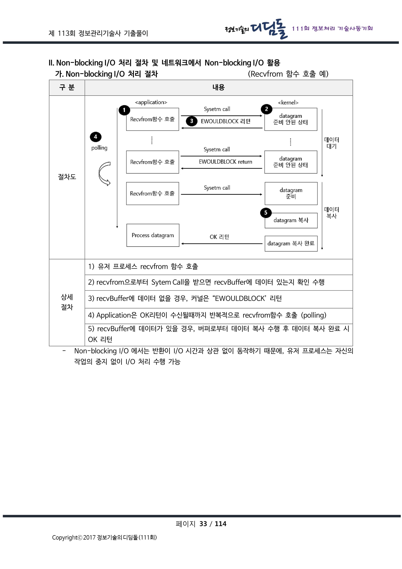 Non-Blocking I/O 모델에서의 작동 방식 : 어플리케이션(프로그램)에서 수신용 함수를 호출할 때, 커널은 읽을 데이터가 없으면 EWOULDBLOCK을 리턴한다.