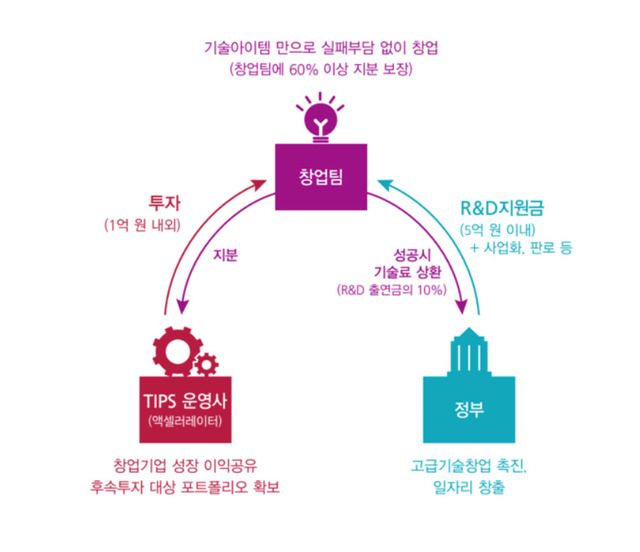 •︎ TIPS(Tech Incubator Program for Startup, 이하 팁스)는 민간이 유망 기술창업 기업에 투자 후 정부에 추천하면, 정부는 이를 심사·평가하여 R&D 및 사업화를 연계 지원하는 사업임