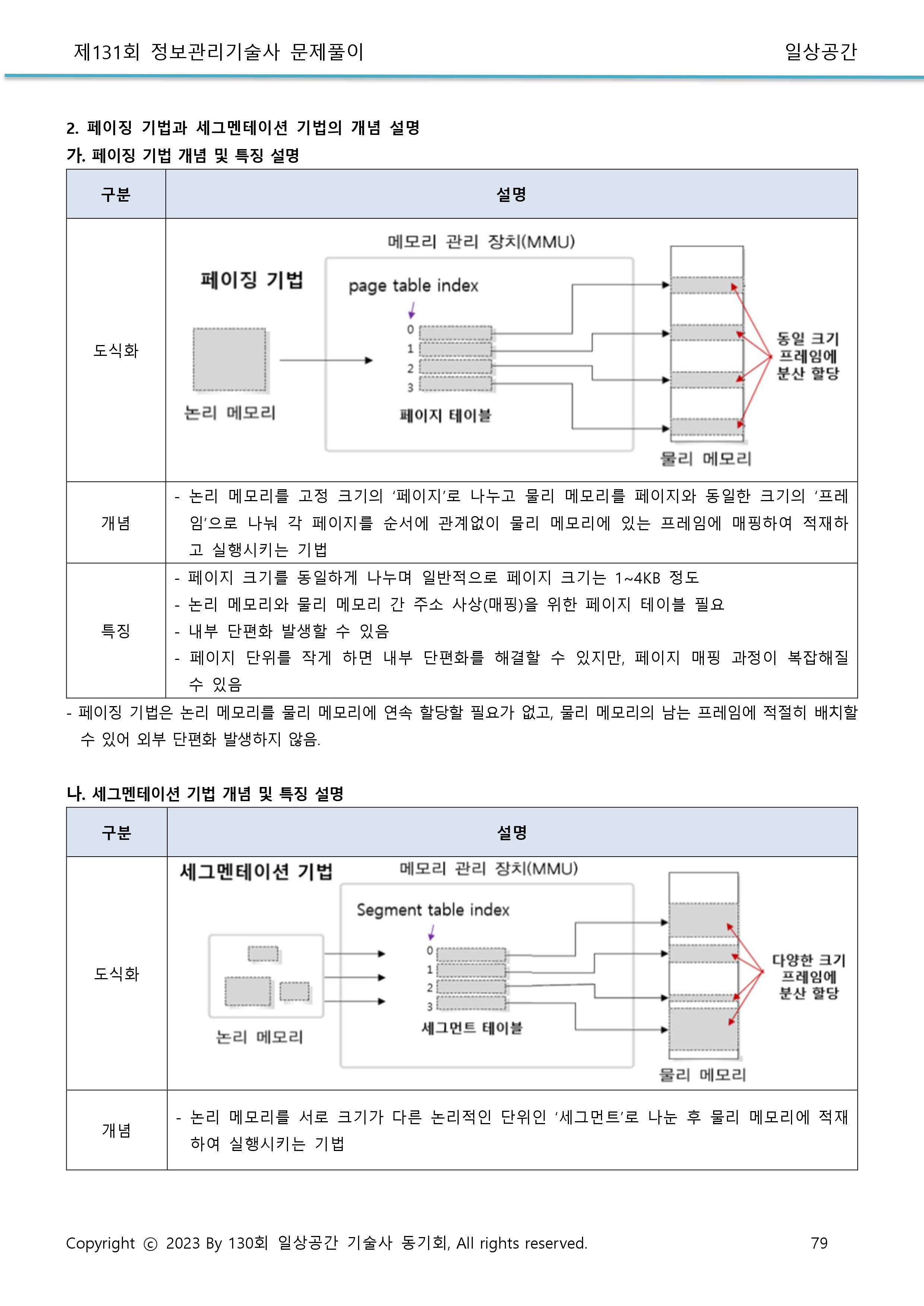 (개념)시스템에 설치된 물리적 기억장치의 효율적 사용을 위해 사용자에게 물리적 기억장치를 숨기고 논리적으로 확장된 기억장치를 제공하는 H/W, S/W 방법