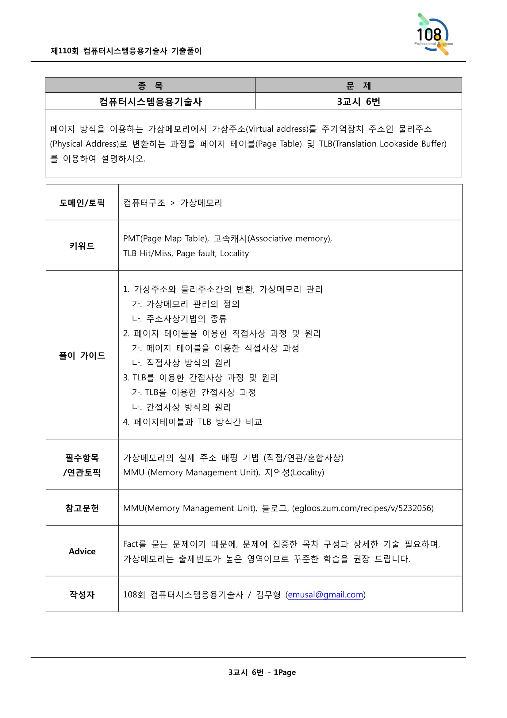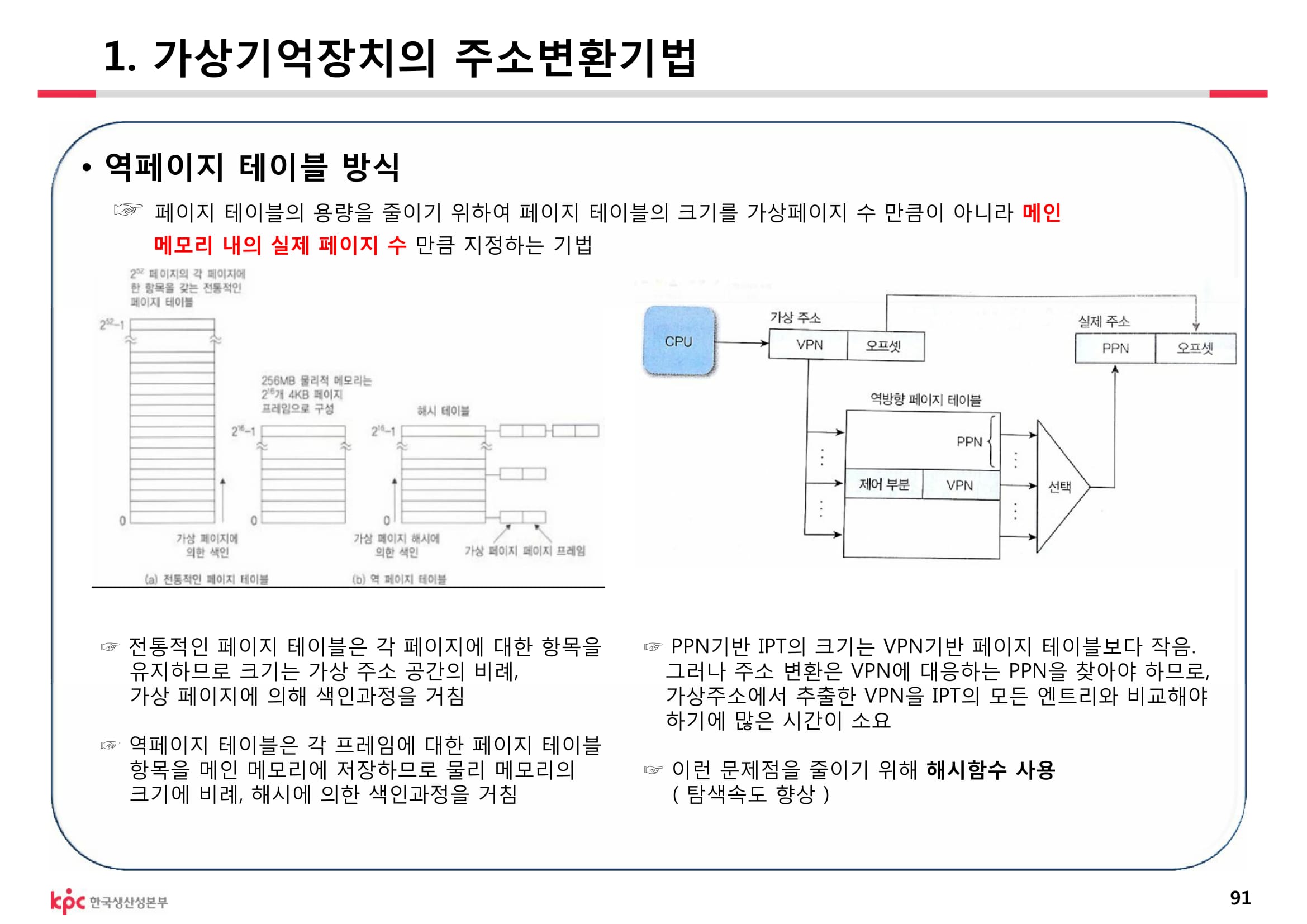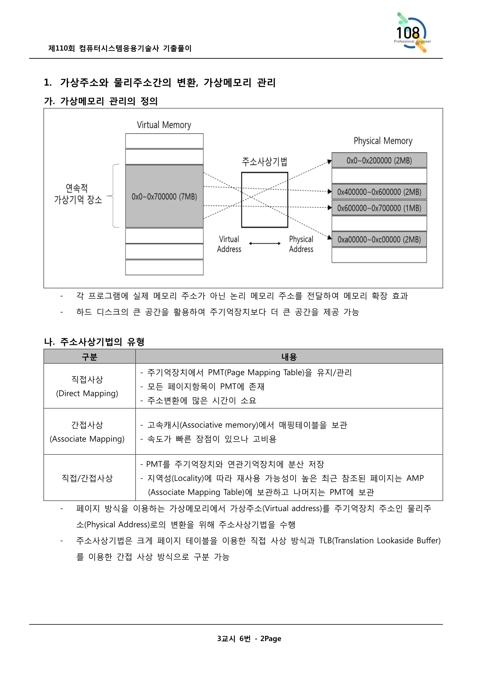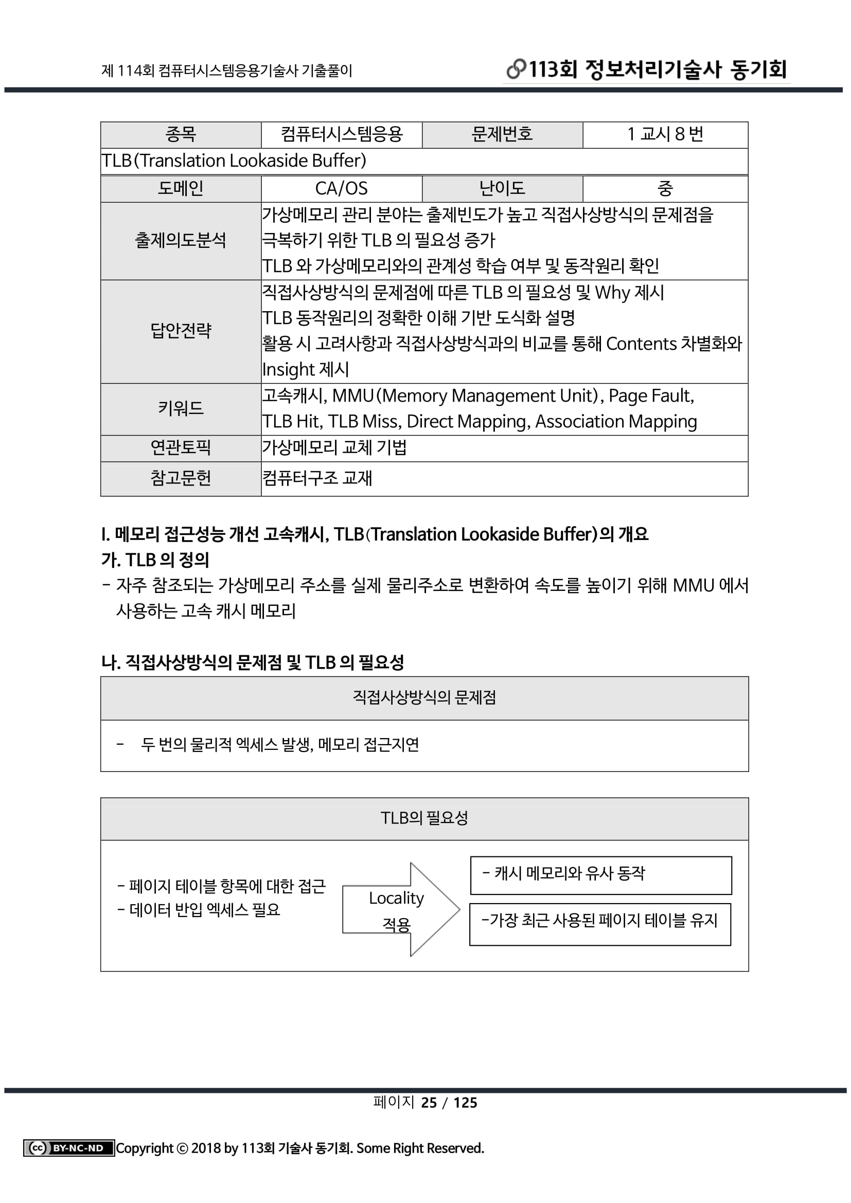 [개념] 가상 메모리 주소를 물리주소로 변환하는 속도를 높이기 위해 사용되는 고속의 캐시 메모리. 가상메모리 참조시 두번의 물리엑세스 필요사항 개선