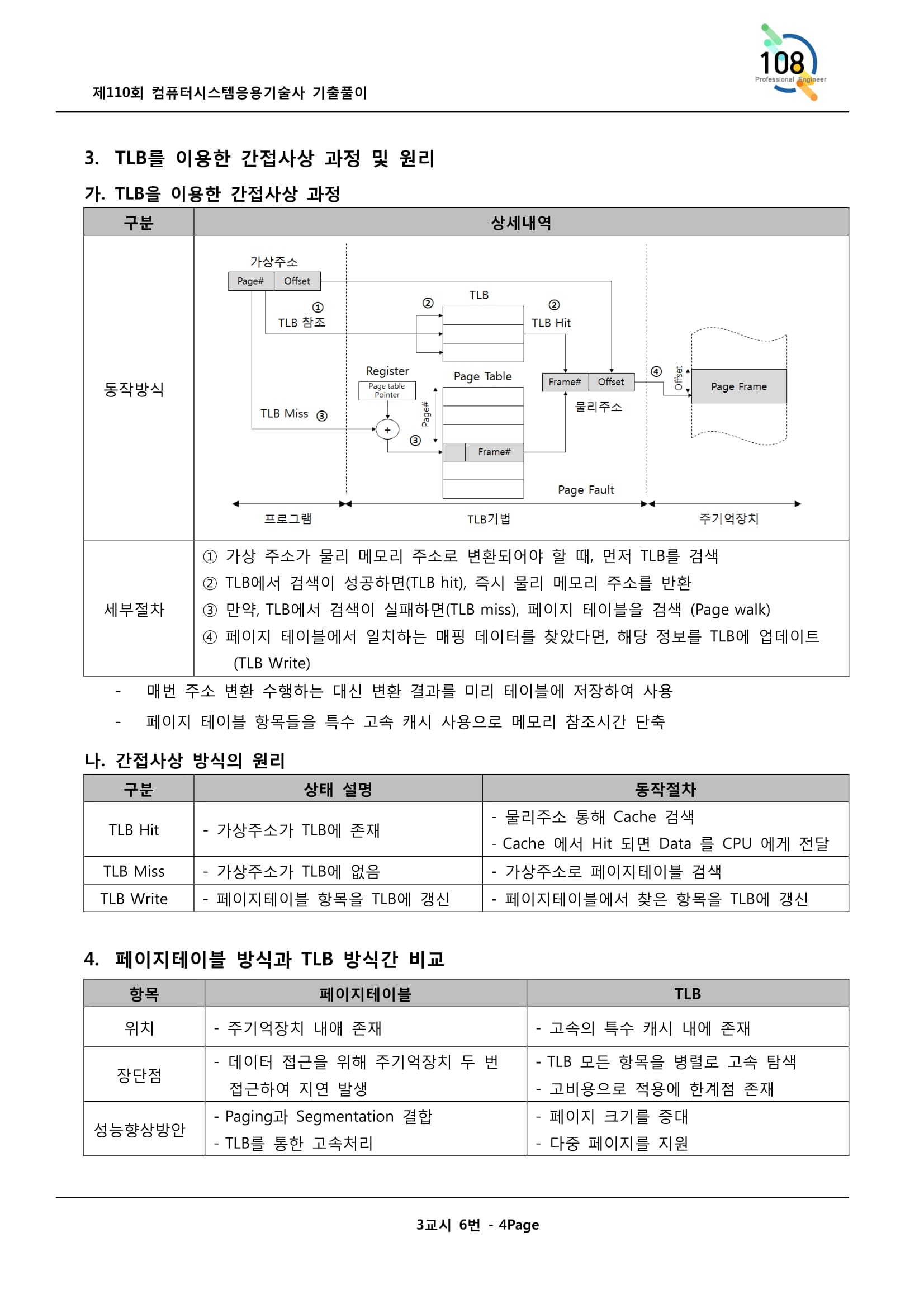[프로세스] TLB우선검색->TLB Hit->TLB Miss->메모리접근