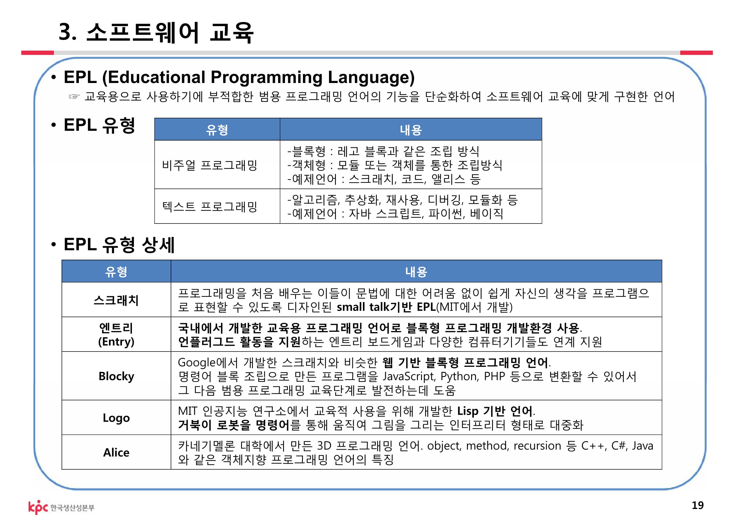 [목적] 실제 문제 해결을 위한 전문적 프로그램 개발보다 프로그래밍 교육 목적