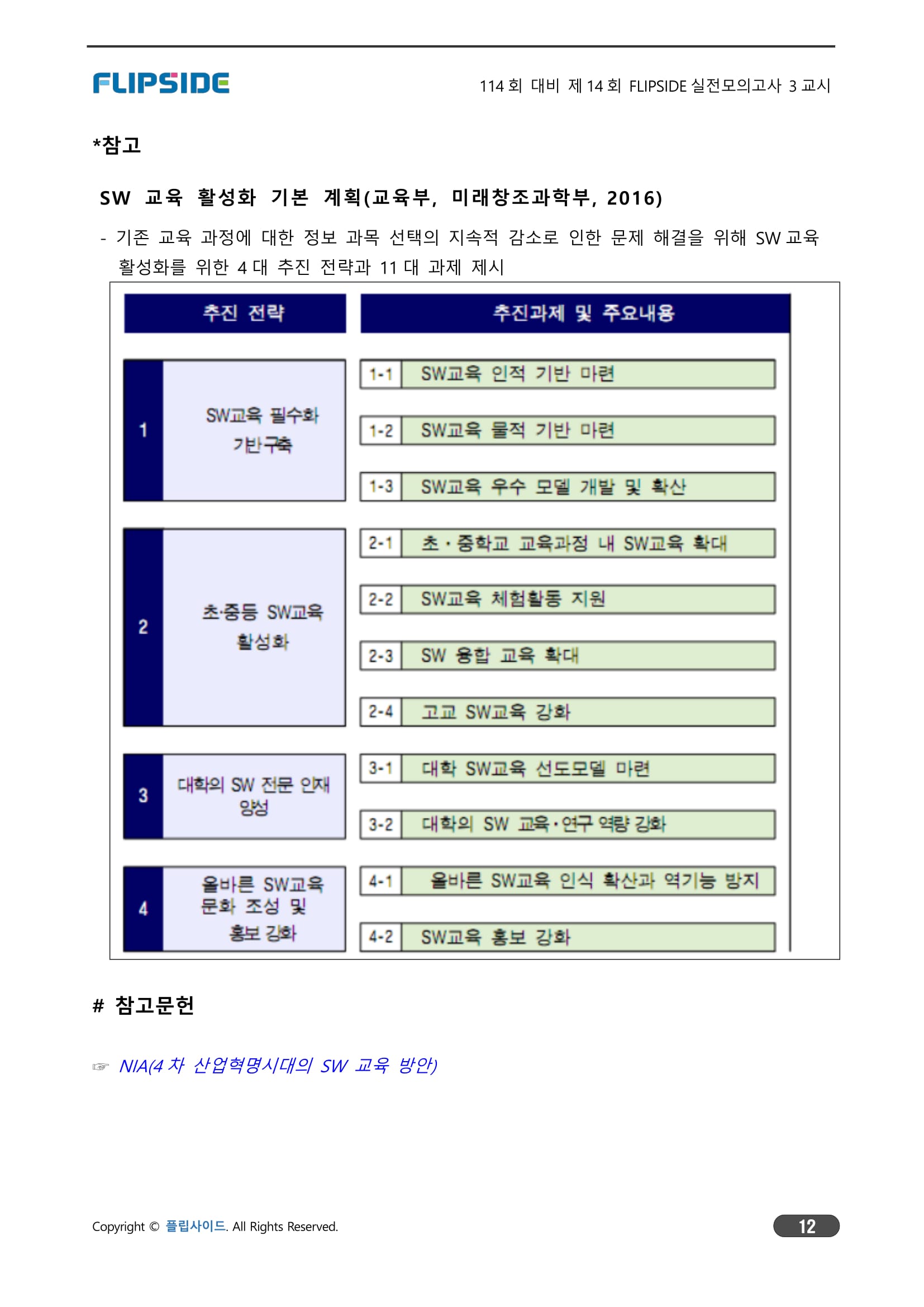 . 실전적SW전문교육, SW공공시장문제개선, SW가치제고위한저작권보호