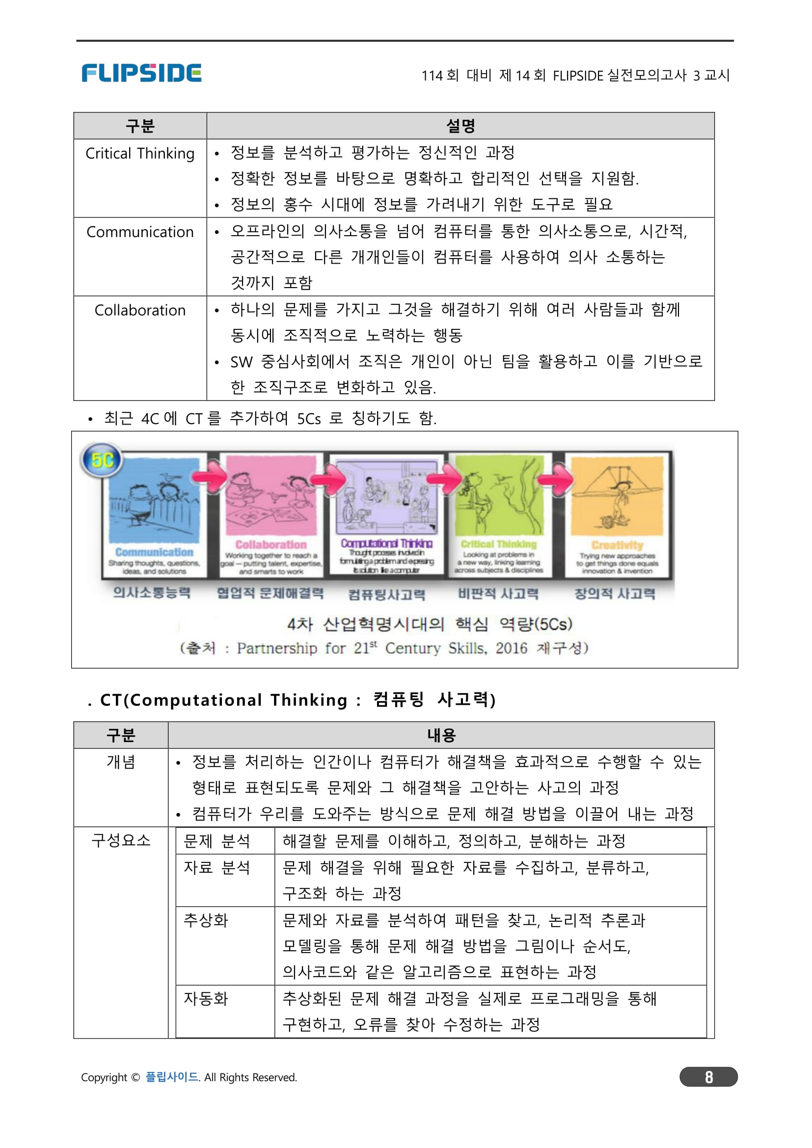 CT, SW교육 종류, 자료 수집 및 분석, 분해, 패턴, 추상화, 알고리즘, 자동화