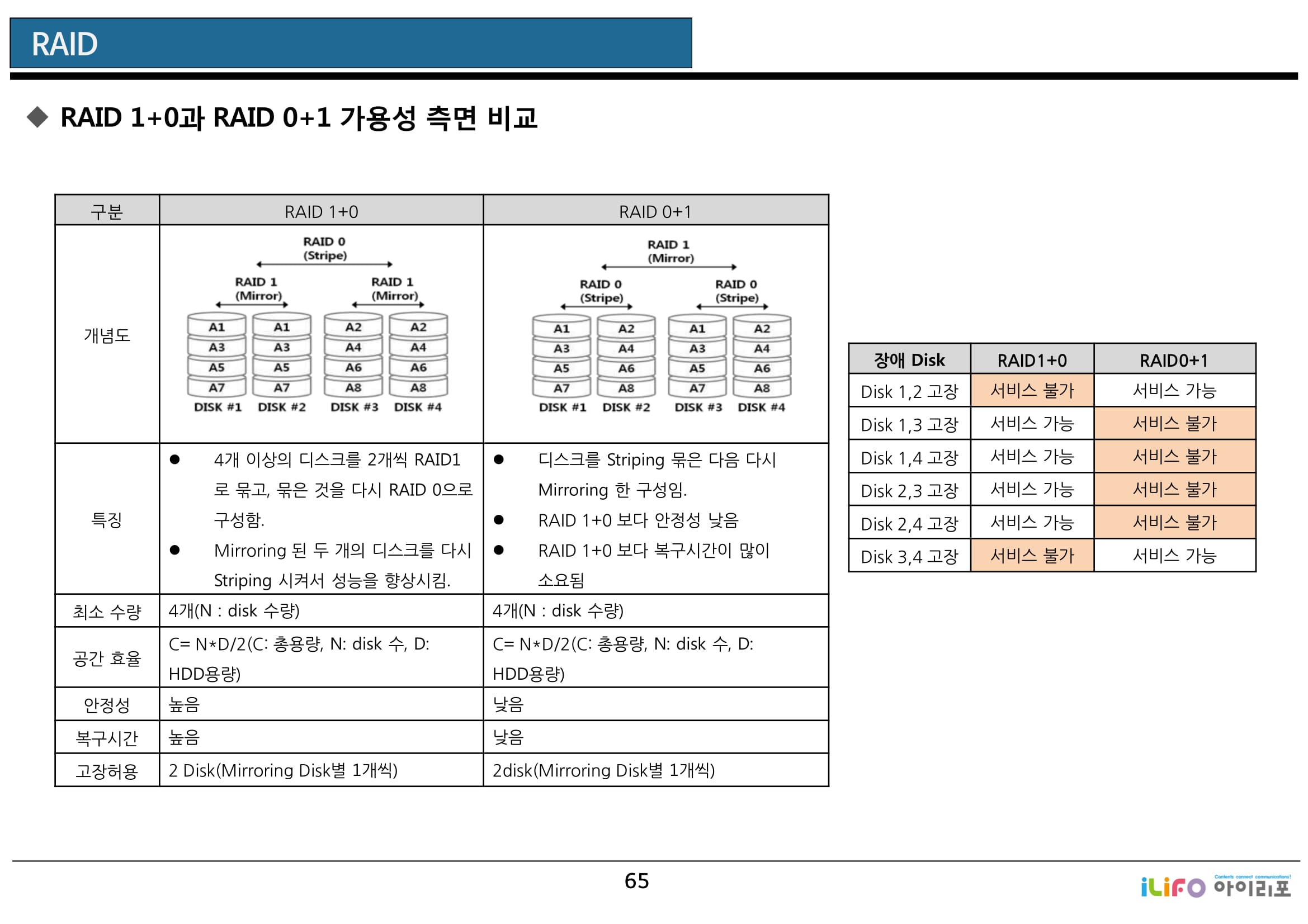 [유형] RAID 0 - 스트라이핑, 효율2배, 1+1 = 2, 장애시 데이터 손실가능성