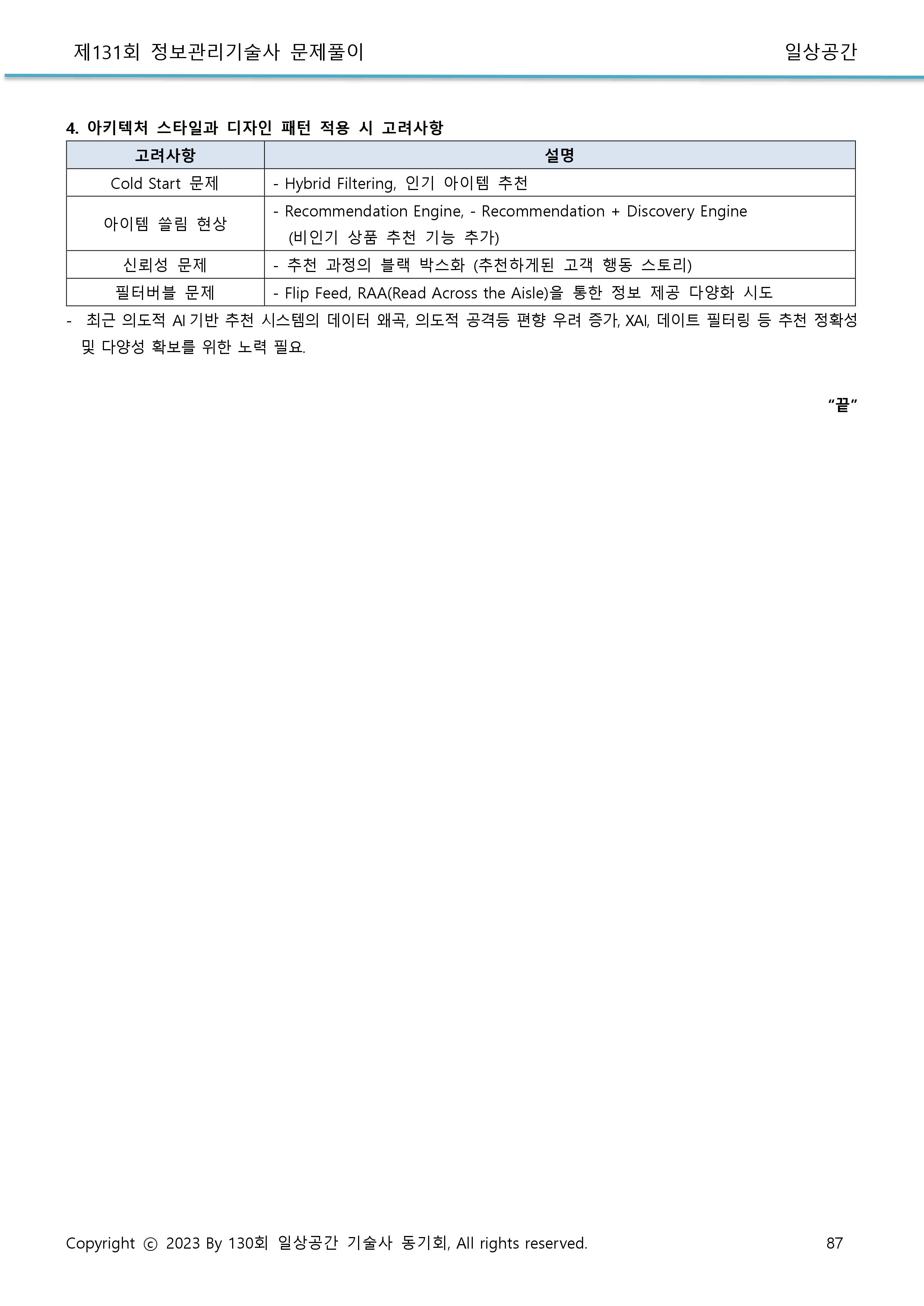 추천 프로그램의 한계