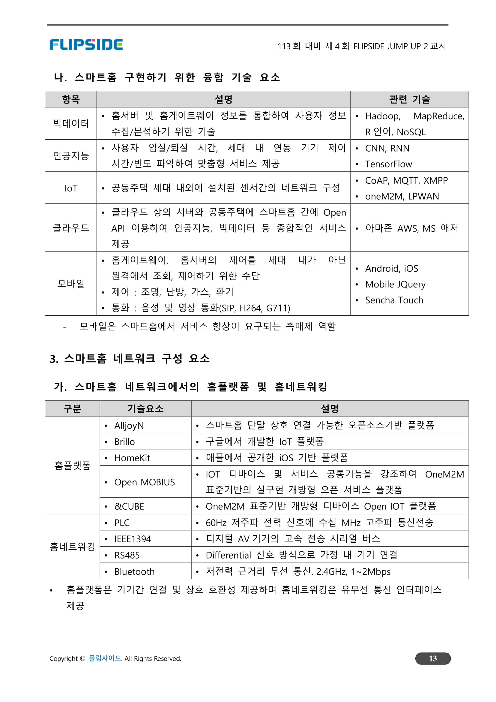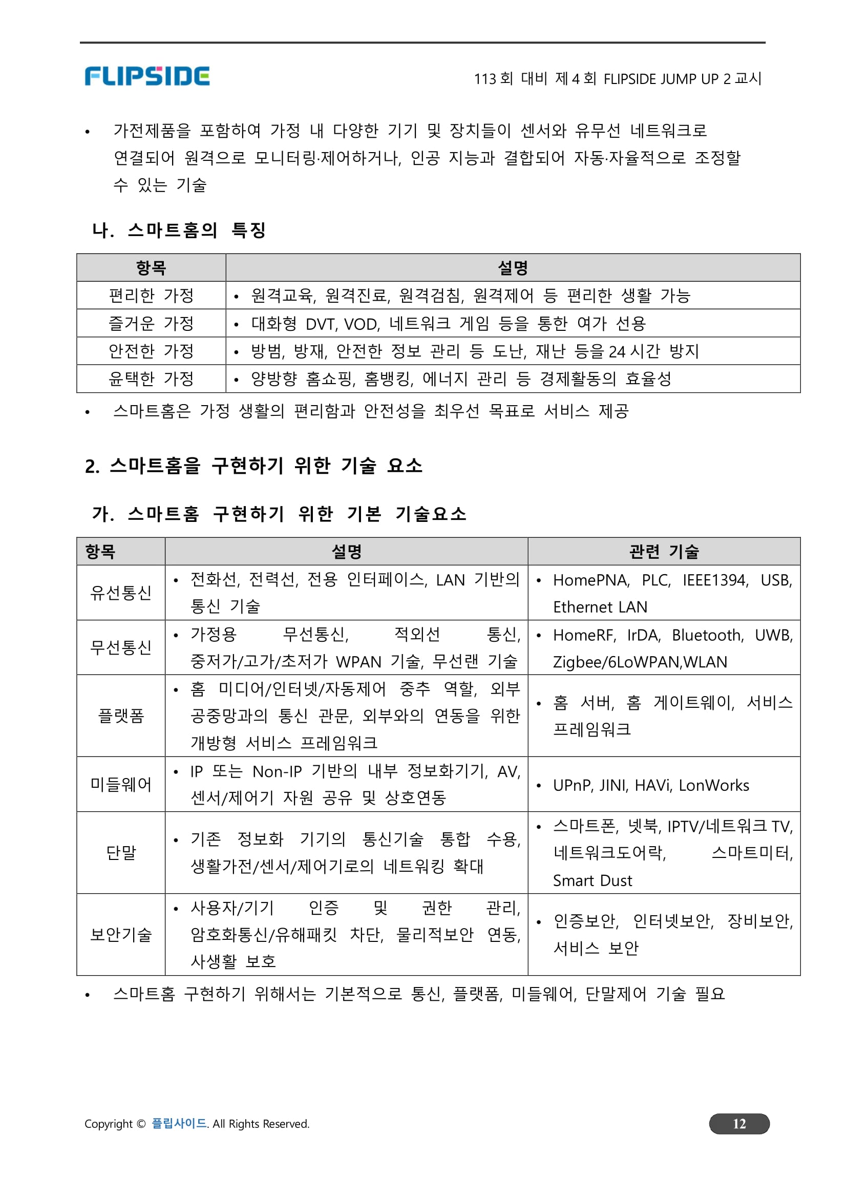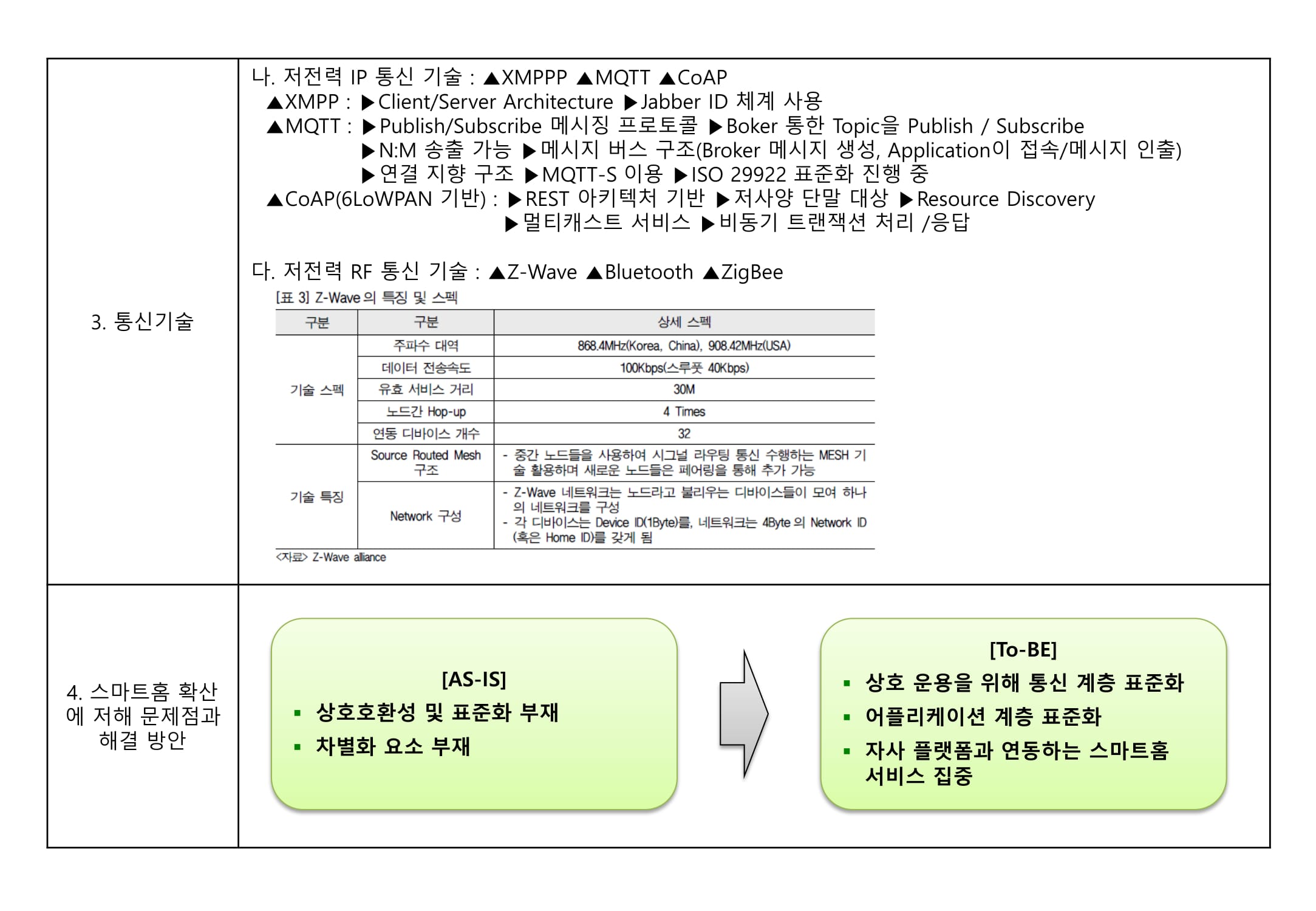 - 다양한 산업분야의 서비스가 스마트홈에 원활하게 제공되고 소비되기 위해서는 기기 및 네트워크 간 상호연동을 위한 표준 정립이 필수적