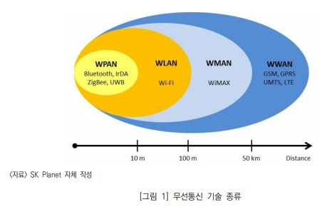 최대 전송거리 LOS(Line of Sight) 100m WPAN 기술