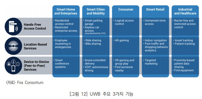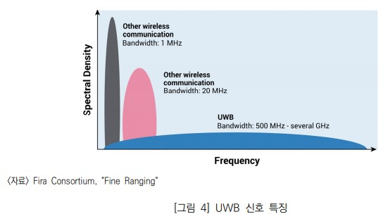(개념) 짧은 시간의 펄스 신호(2ns 주기)를 사용하여 넓은 주파수 대역으로 데이터를 송수신하는 근거리 무선통신 기술