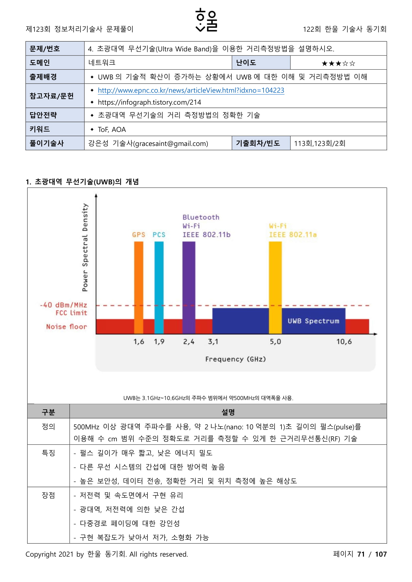 UWB 기술과 응용 분야 (주기동, 2021.4.7)