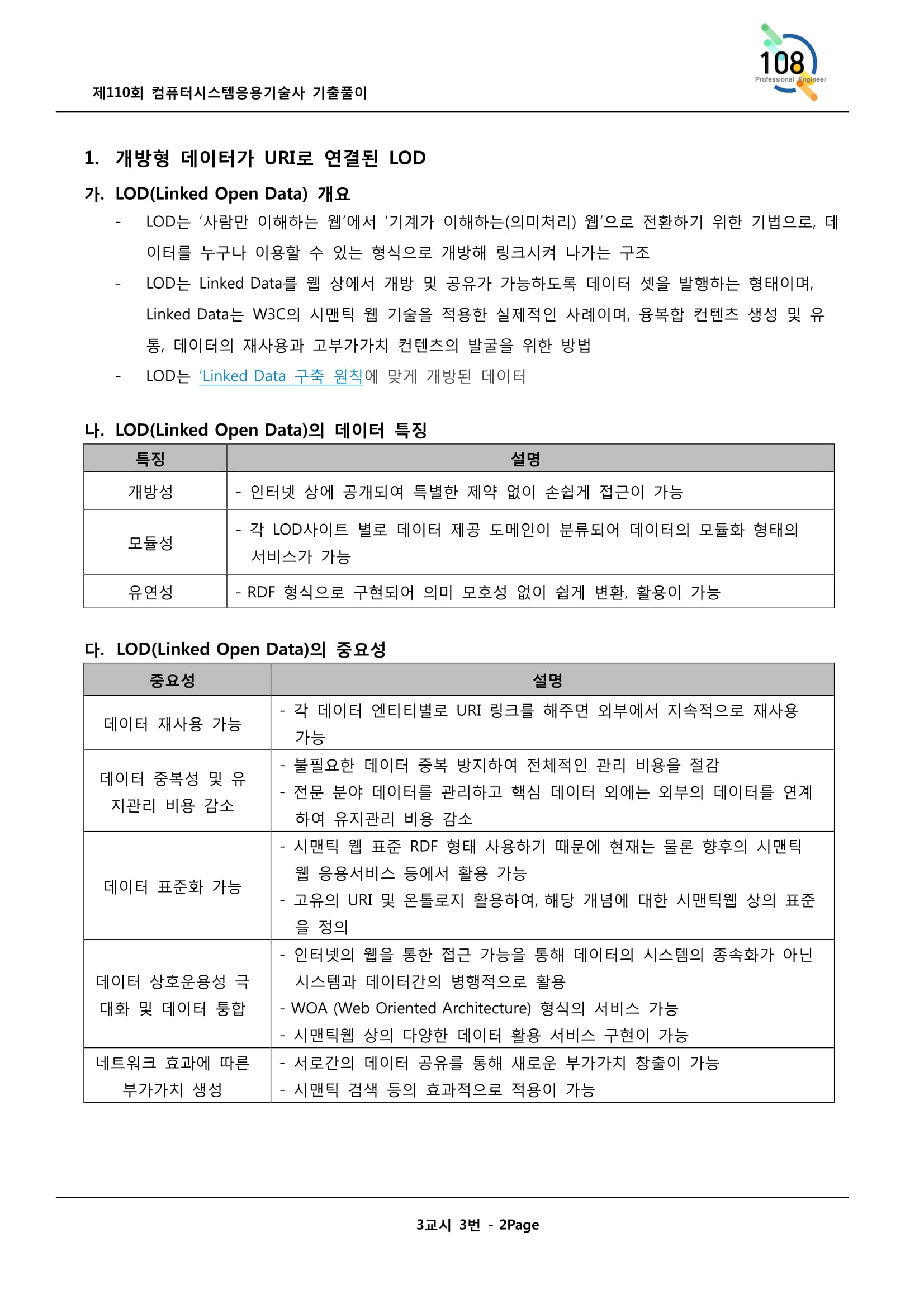 [특징] 인터넷 상에서 개방된 모든 데이터를 연결, 활용하고 상이한 데이터를 통합한 개방형 지식 베이스를 구현가능