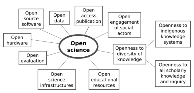 위키백과, 우리 모두의 백과사전. 오픈 사이언스는 과학 연구(출판물, 데이터, 물리적 샘플 및 소프트웨어 포함)와 그 보급 을 사회의 모든 수준, 아마추어 또는 전문가가 액세스할 수 있도록 하