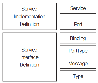 - 여러 웹 서비스 구현 정의에 의해 참조될 수 있는 서비스 정의