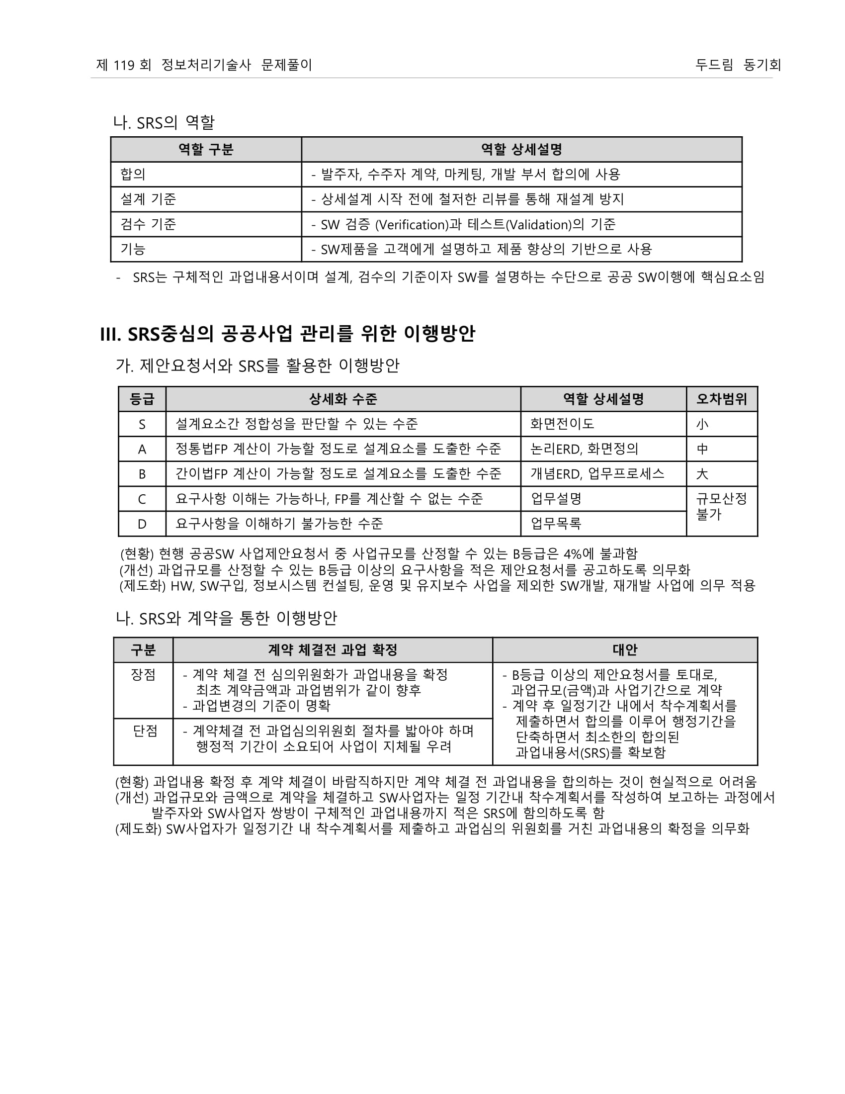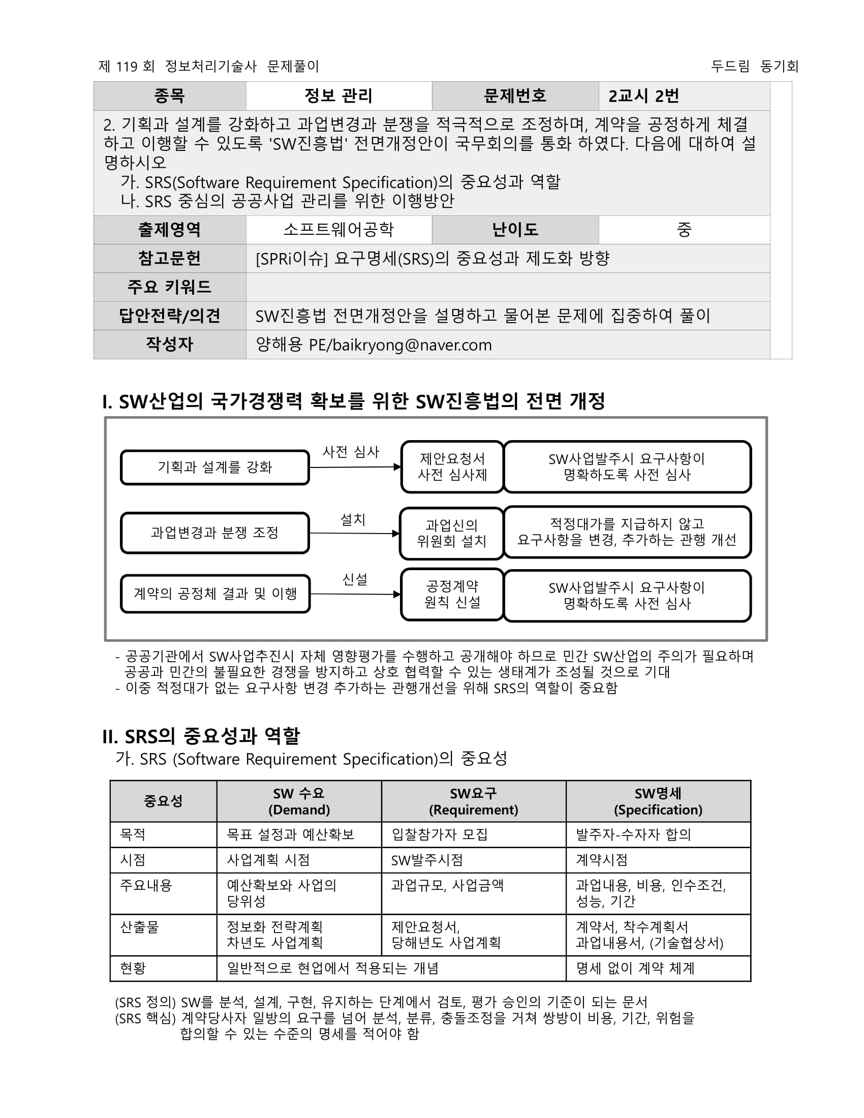 요구명세(SRS)의 중요성과 제도화 방향 - SPRi