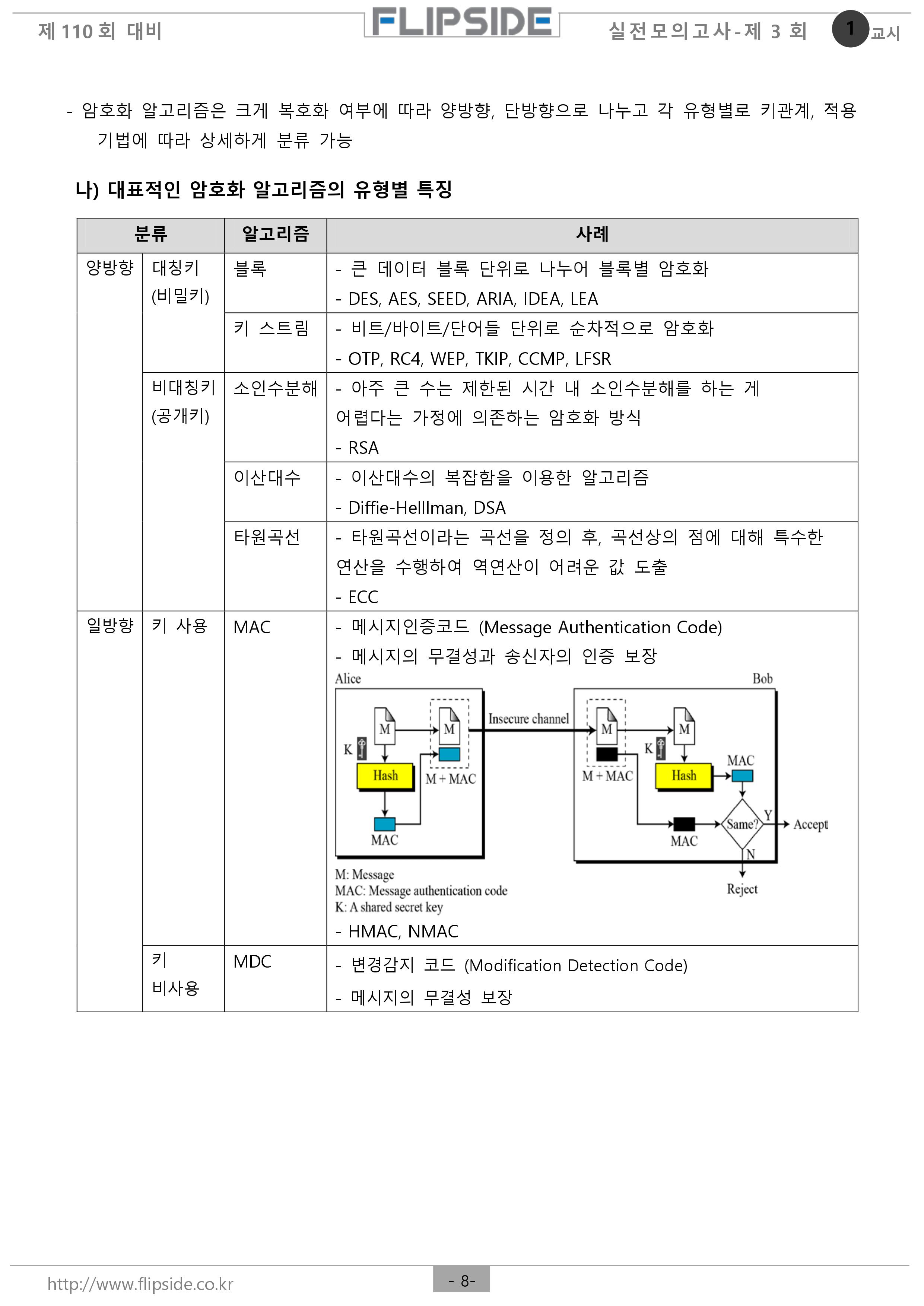 - 블록암호 : 평문을 일정한 블록단위로 나눔 / 기밀성확보,해쉬함수가 다양 / DES,SEED