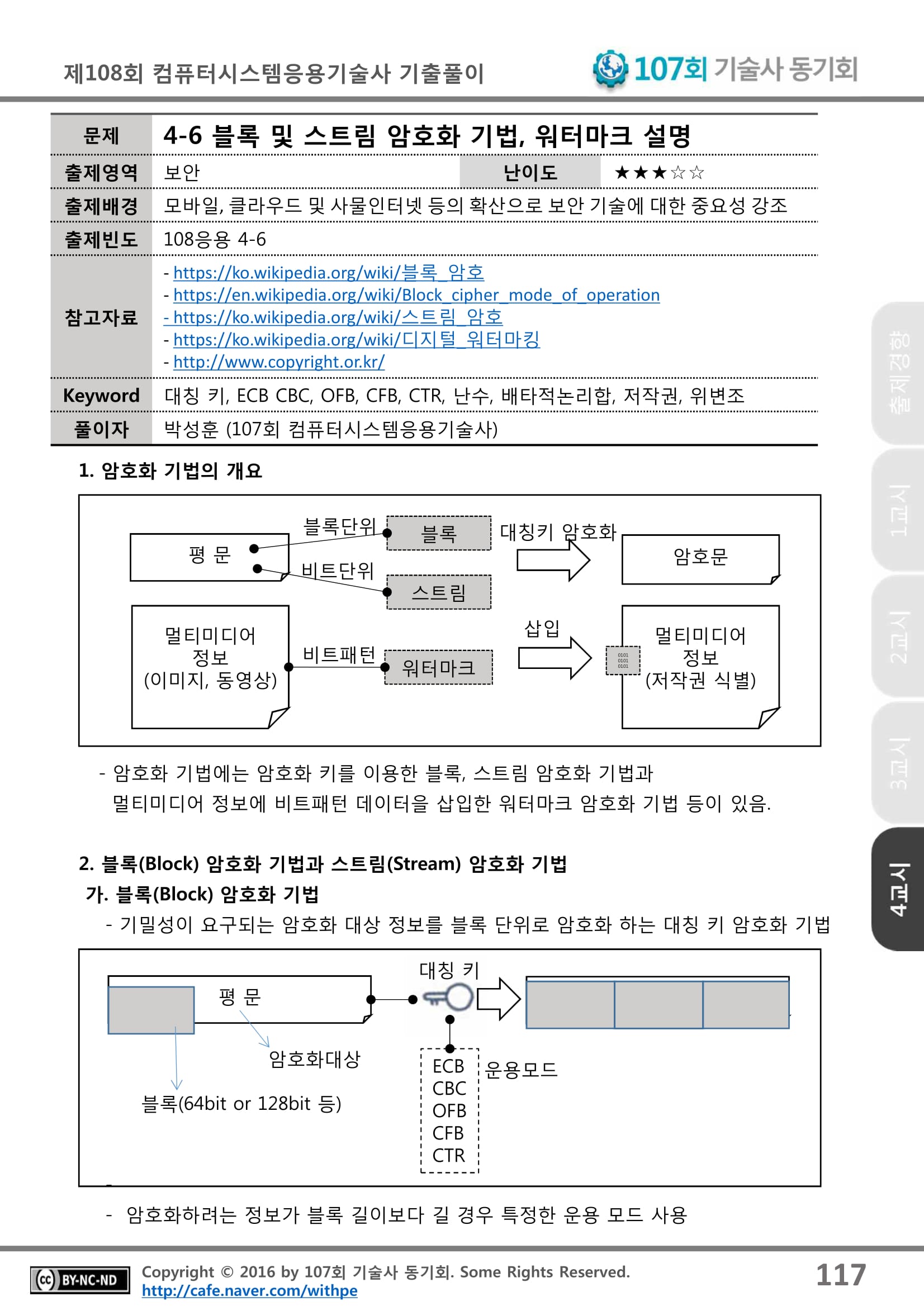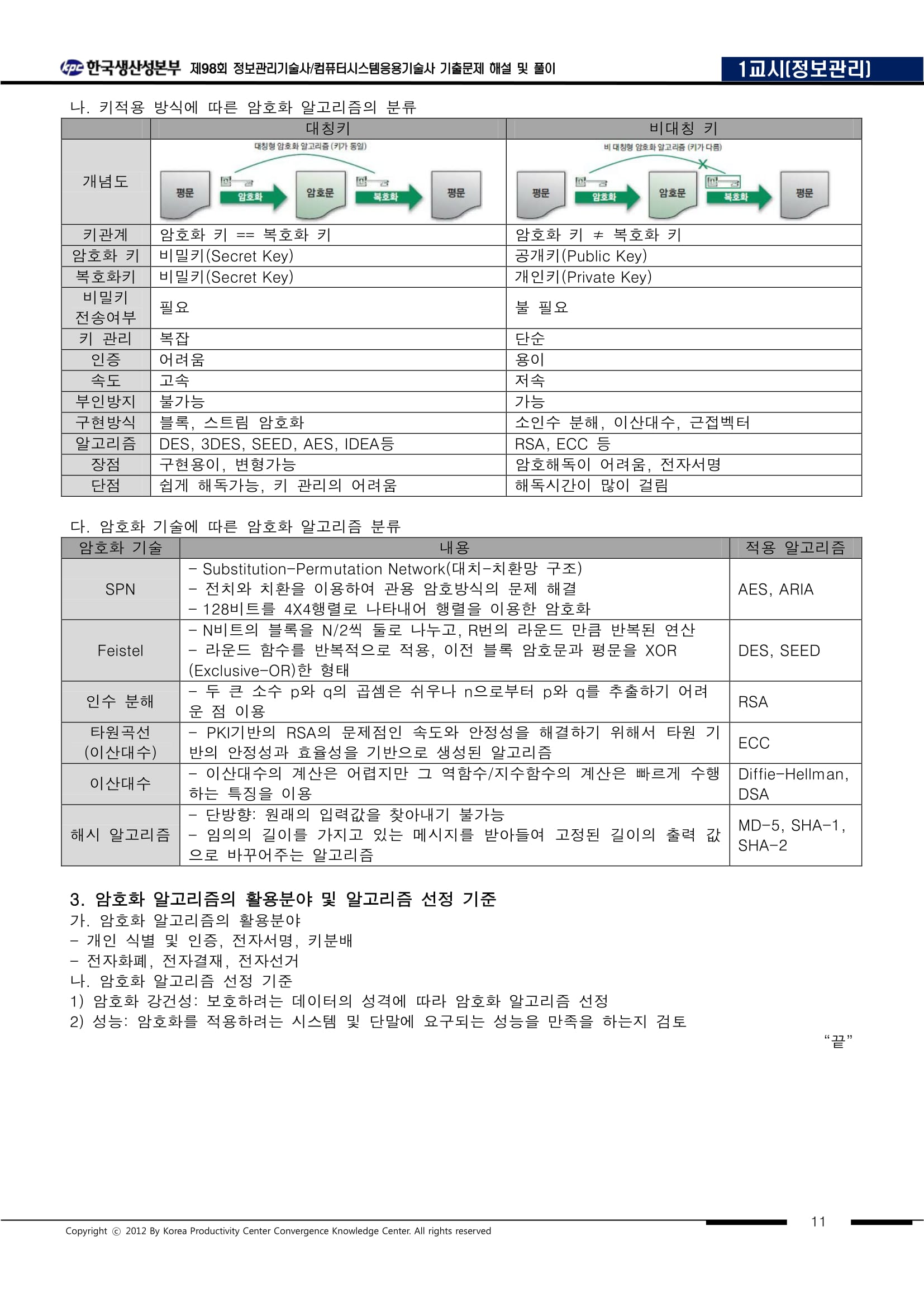 1) 암호화 기술 : 1) 비밀키 알고리즘 : 1) 블록 암호 알고리금 : DES,AES,SEED