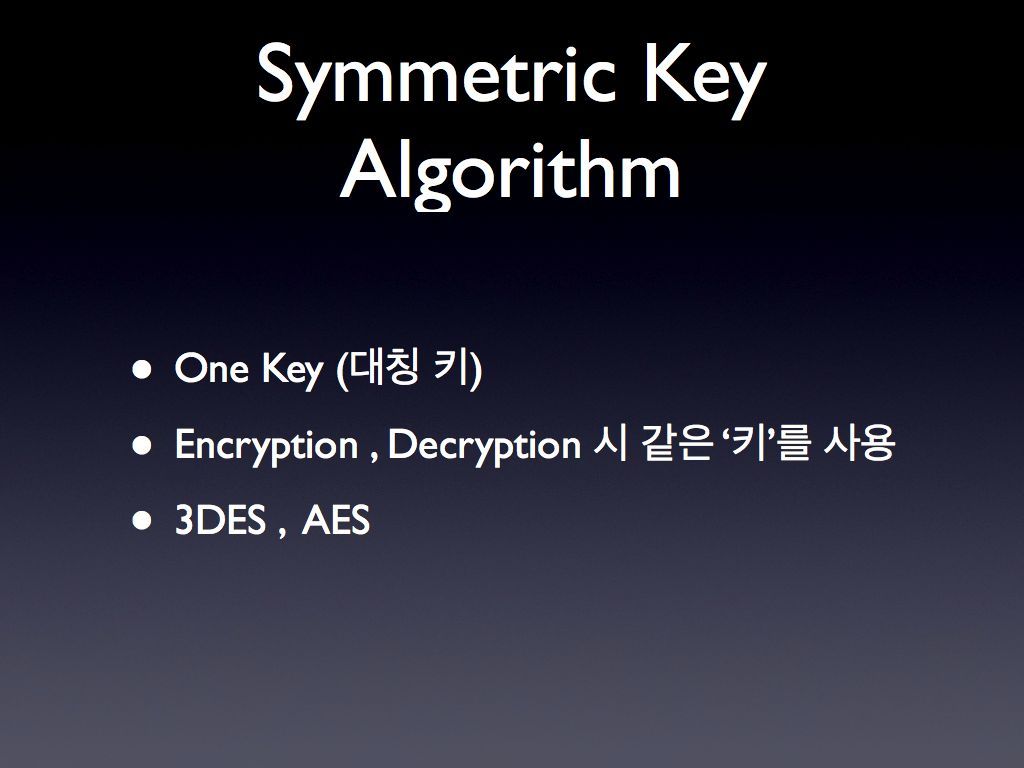 인크립션 (Encryption) 과 디크립션 (Decryption) 시 한개의 같은 키를 이용
