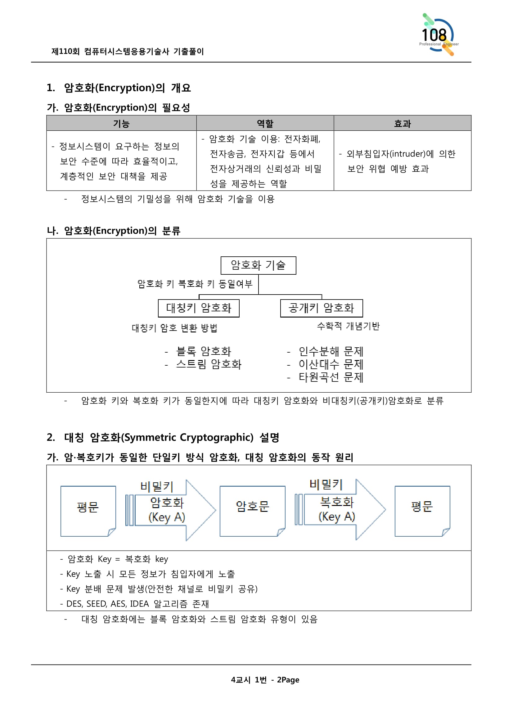 대칭키 암호화구조라고하면, 암호화할 때의 키와 복호화 때의 키가 동일한 암호화 방식을 말합니다.