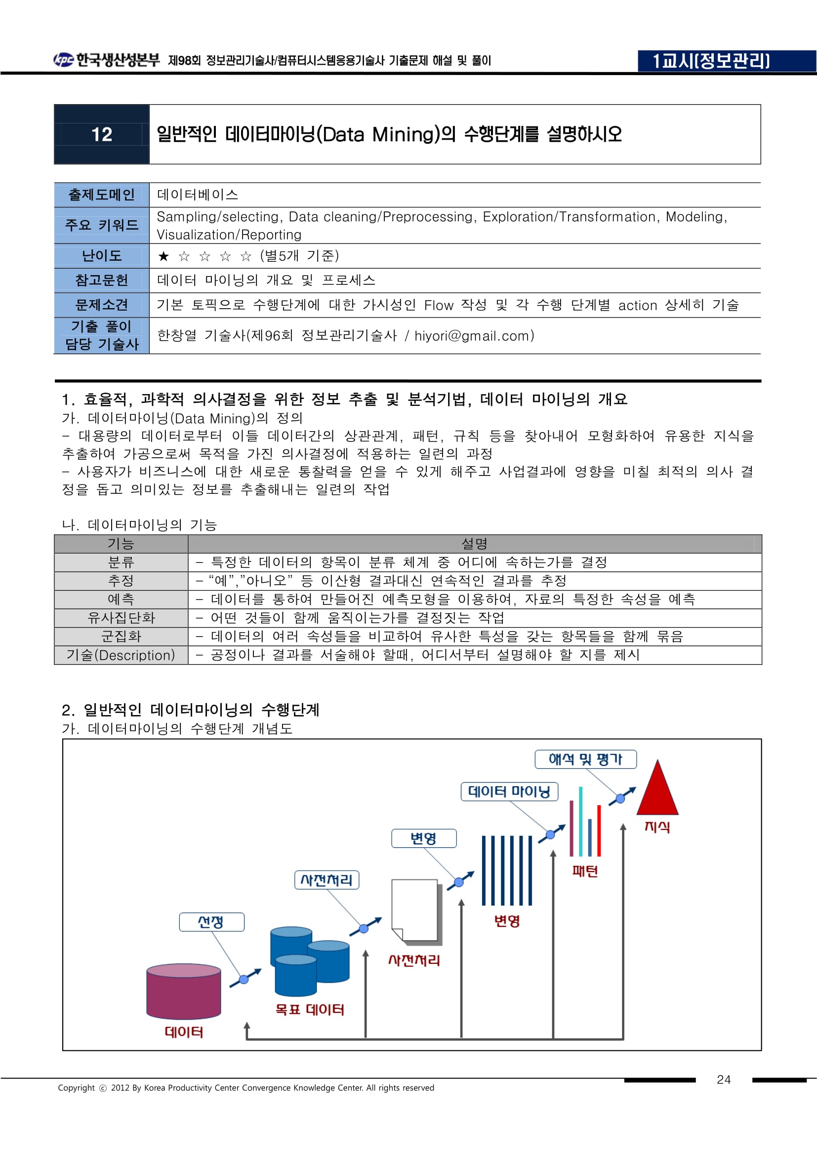 (개념) 대규모 데이터로부터 숨겨진 패턴이나 정보 또는 지식을 찾아내는 기술