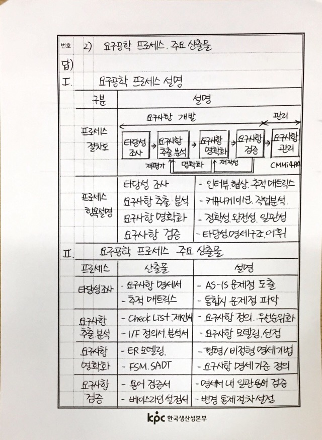 - 요구사항 관리: 요구사항 협상, 요구사항 기준선, 요구사항 변경관리, 요구사항 확인 및 검증