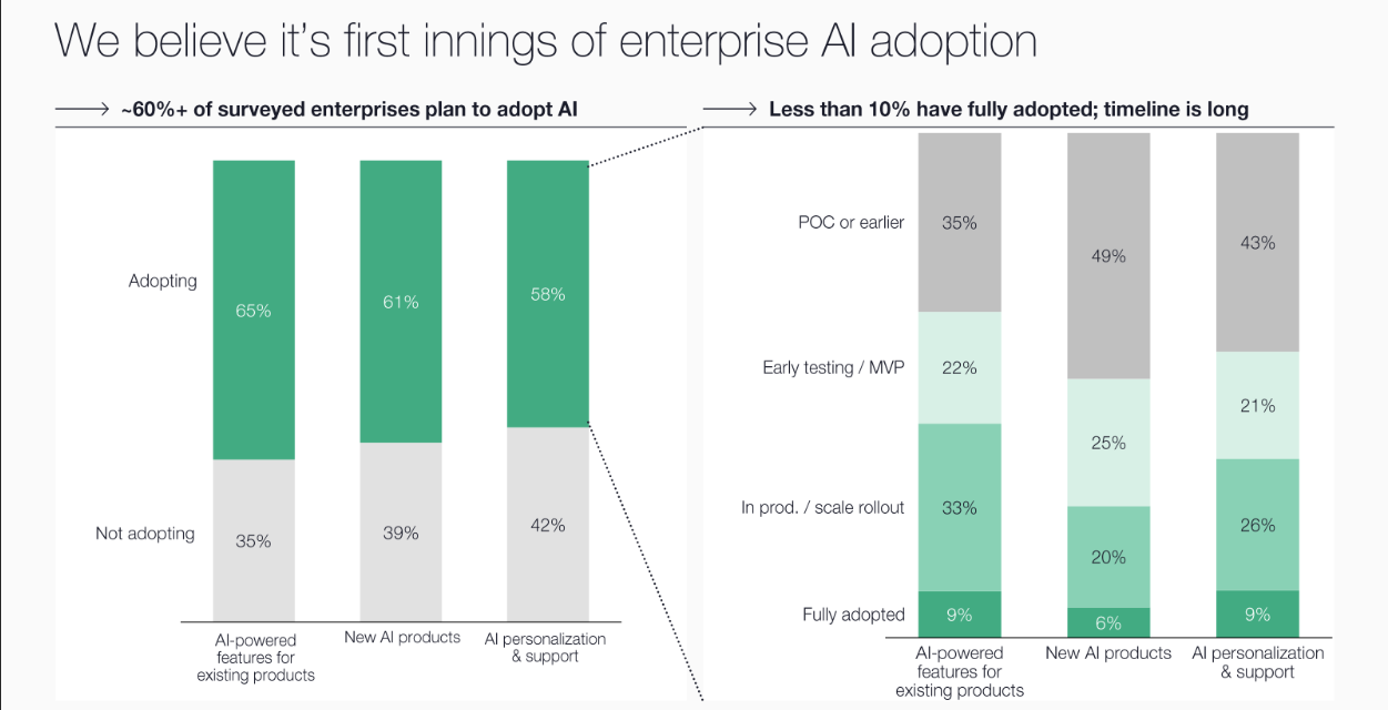 - 우리는 AI 애플리케이션 채택이 이제 시작되고 있는 것으로 보고 있으며, 앞으로 더 많은 사용 사례가 등장할 것으로 예상하고 있습니다.