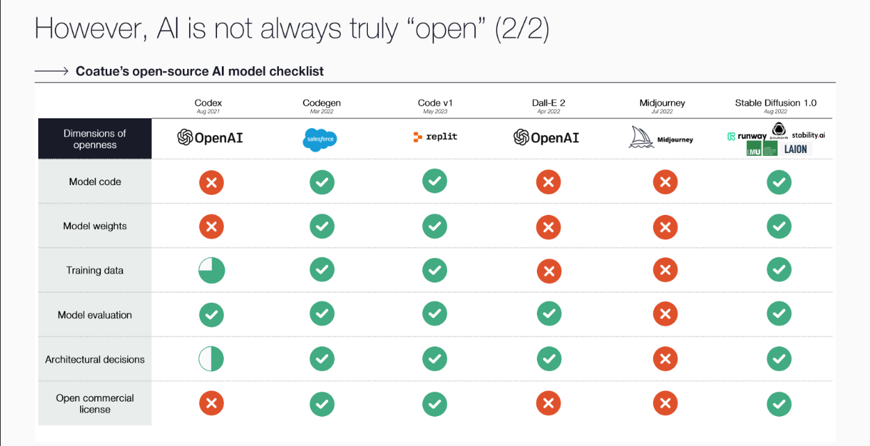 - 하지만 모든 오픈소스가 진정으로 '열려(open)'있지는 않으며, 최근 회사들은 연구 내용이나 결과를 공개하지 않거나, 모델을 비공개로 유지하는 등의 움직임을 보였습니다.