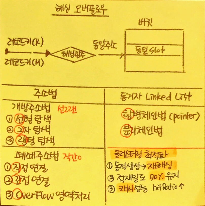 #개방주소법(Open Addressing) : 오버플로우 발생시 다른 데이터 주소로 다시 해시시키는 방법(반복 수행)