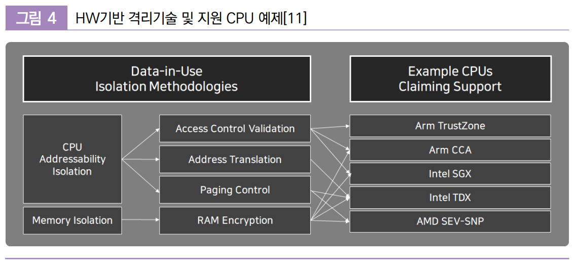 (개념) HW 기반의 검증된(attested) 신뢰할 수 있는 실행환경 (Trusted Execution Environment,TEE)를 제공하며, 데이터의 무결성, 기밀성, 코드 무결성을 기본적으로 제공함.