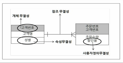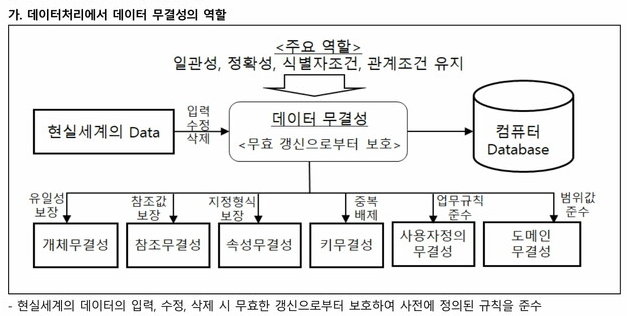 도메인 무결성, 릴레이션 무결성, 제약조건, 참조 무결성, 선언적/절차적 무결성