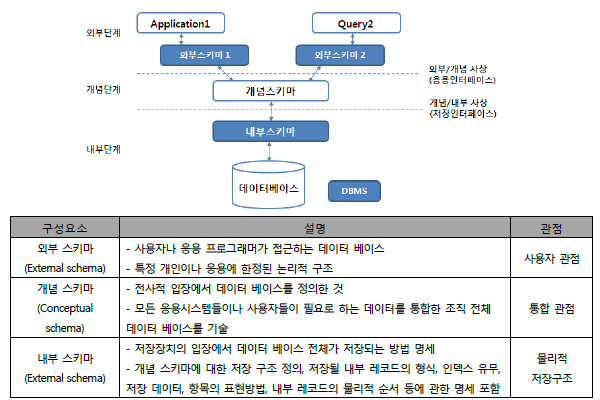 데이터 모델링 - 스키마 - 외부, 개념, 내부 (아키텍처)