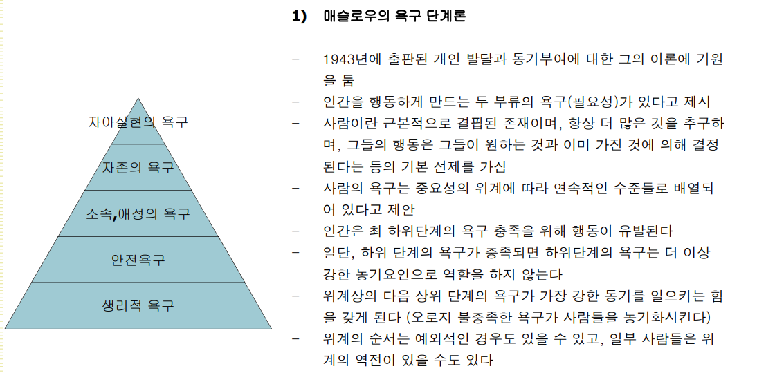 - 매슬로 욕구 5단계, 허즈버그 2 Factor, 맥클러랜드 3욕구, 맥그리거 XY