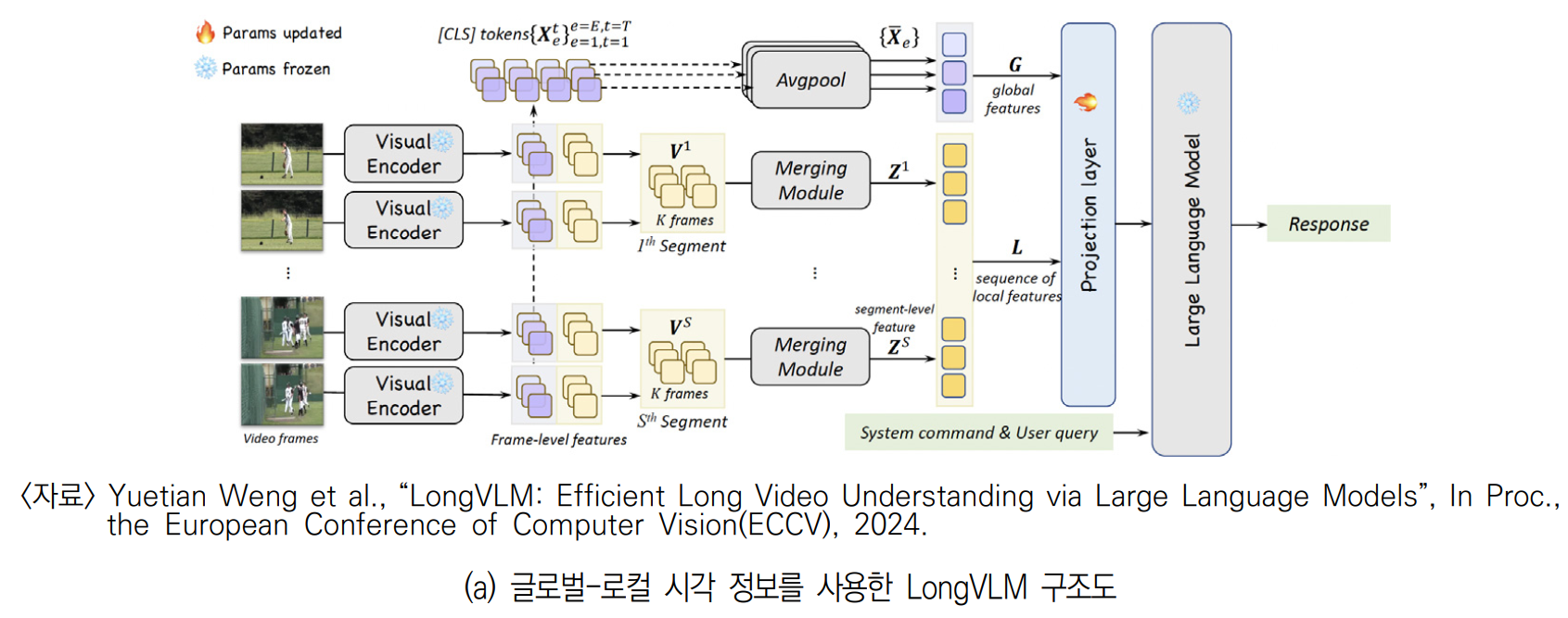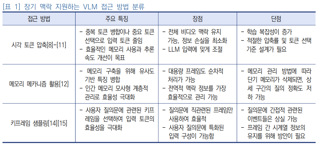 [시각적 장기 맥락을 지원하는 대표 시각-언어 모델 구조도]