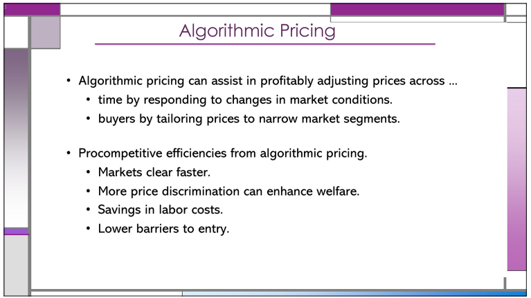2. 경쟁 촉진적 효과 (Procompetitive efficiencies)알고리즘 가격 책정이 단순히 기업 이익만을 위한 것이 아니라, 경쟁을 활성화할 수도 있음을 보여줌: