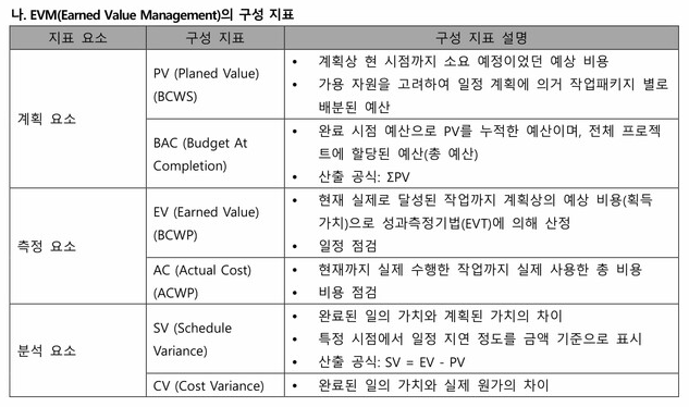 프로젝트 관리 - 원가관리 - EVM (Earned Value Method)