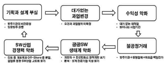 그동안 SW업계는 공공SW사업을 수행할 때 전문성이 떨어지는 발주자의 두루뭉술한 제안요청서(RFP) 때문에 수익성이 떨어지고 개발자들은 열악한 근무여건에 시달렸다. 한국SW산업협회에 따르면 공공SW사업을 수행한 111개사 중 50%가 불명확한 RFP와 과업변경, 추가개발 경험이 있는 것으로 나타났다. RFP 내용이 불명확하다 보니 사업비는 정해져 있는데 과업변경과 추가개발이 빈번하고 무상개발마저 요구해 수주기업의 수익성은 나빠졌다. 더구나 공공기관의 지방이전과 인터넷·클라우드 서비스로 근무환경이 급변했는데도 여전히 발주기관은 상주 개발과 투입인력 점검 등 관행을 바꾸지 않아 왔다.