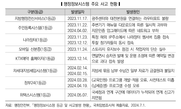 작년 11월부터 1등급 행정정보시스템 사고 12건…대기업 참여 논의 확대 전문가들 "근본적 해결책 마련해야"…노후 장비 교체·관리체계 개선 시급 지난해 말부터 올해 상반기까지 이어진 행정전