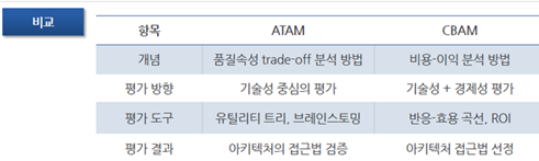#특징: ATAM이 끝나고 난후 ATAM 의 산출물을 기반으로 시작하는 경우가 많으며, 기술측면과 경제성을 함께 평가하는 기법