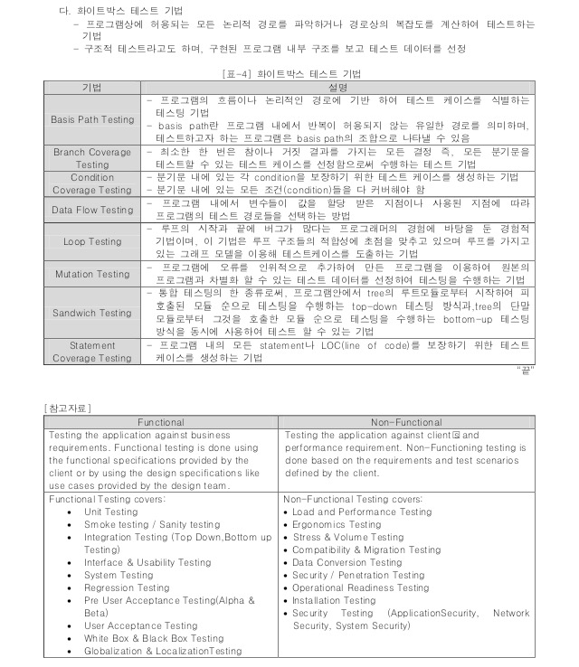 품질속성, 블랙박스 테스트, 화이트박스 테스트