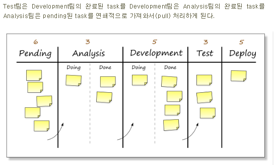 정의: Workflow상의 공정가시화를 통하여 프로세스를 적정선으로 관리하여 적시개발(Just in time) 및 품질과 생산성을 높이는 개발방법론