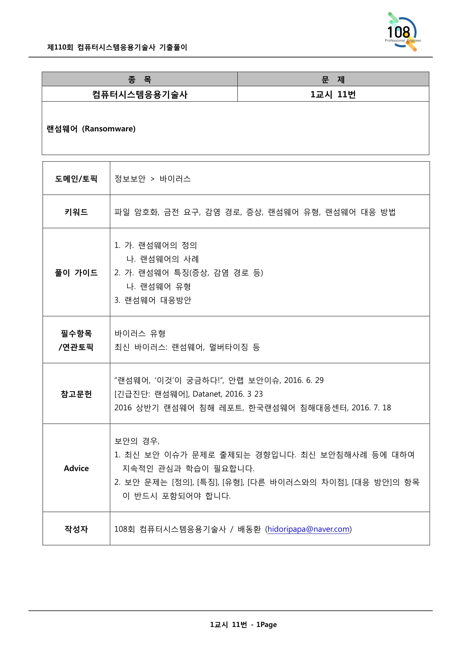 1) 랜섬웨어 유형에 따라 상이할 수 있습니다.
