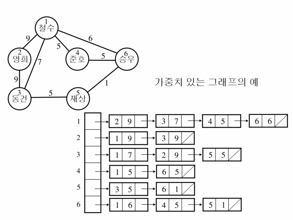 - 가중치 그래프(Weighted Graph), 네트워크 : 간선에 비용이나 가중치가 할당된 그래프