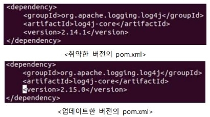 log4j 설치 여부를 확인했다면 이제는 버전을 확인해야 한다. 리눅스에서 log4j를 검색하거나 ‘Java Spring Framework Maven’ 사용 시 log4j가 설치된 경로의 pom.xml 파일을 열어 ‘log4j-core’로 검색하면 버전을 확인할 수 있다.