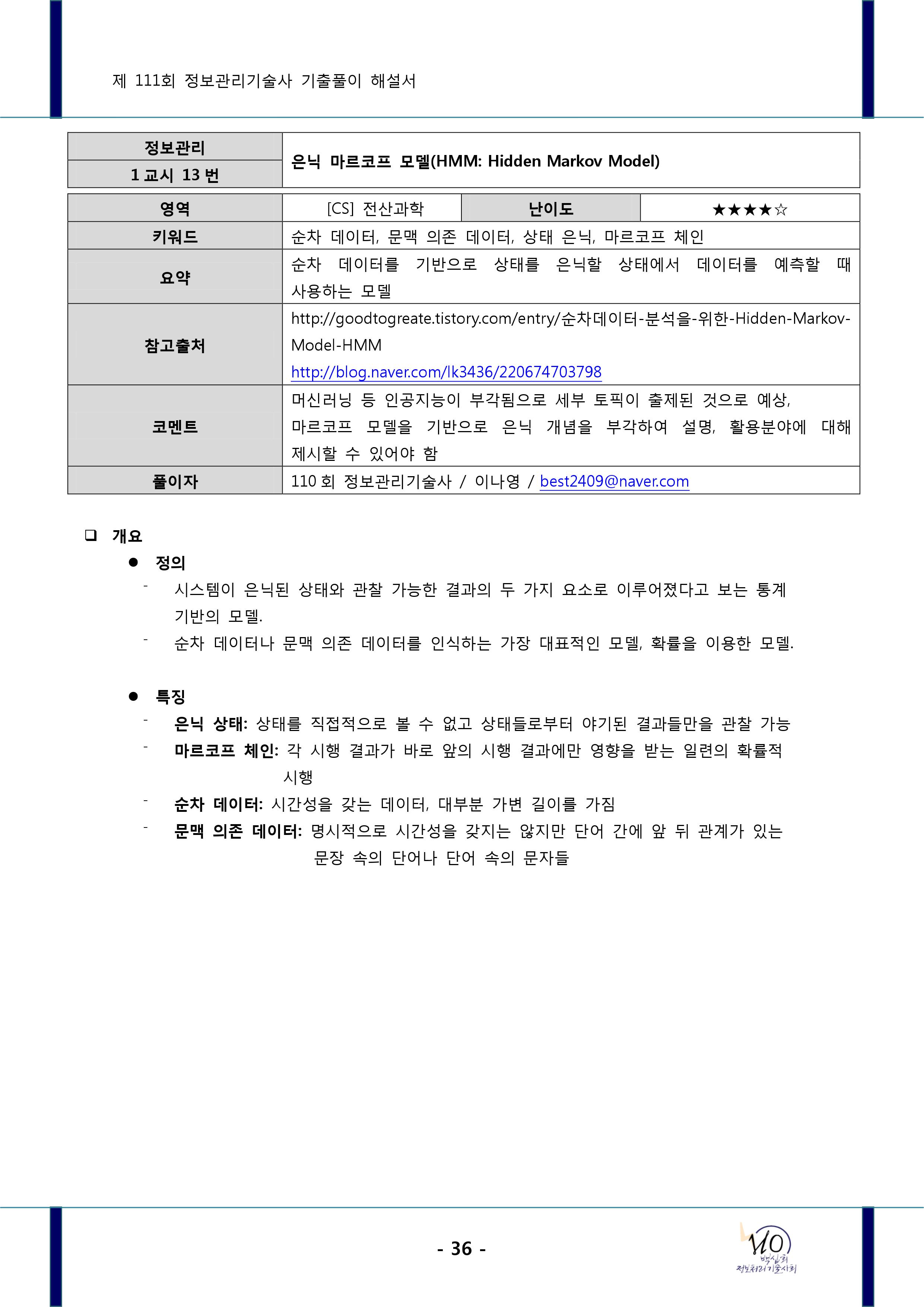 - Rabiner 연구기반 HMM 기본 3가지 문제를 고려하여 적용하는 것이 중요