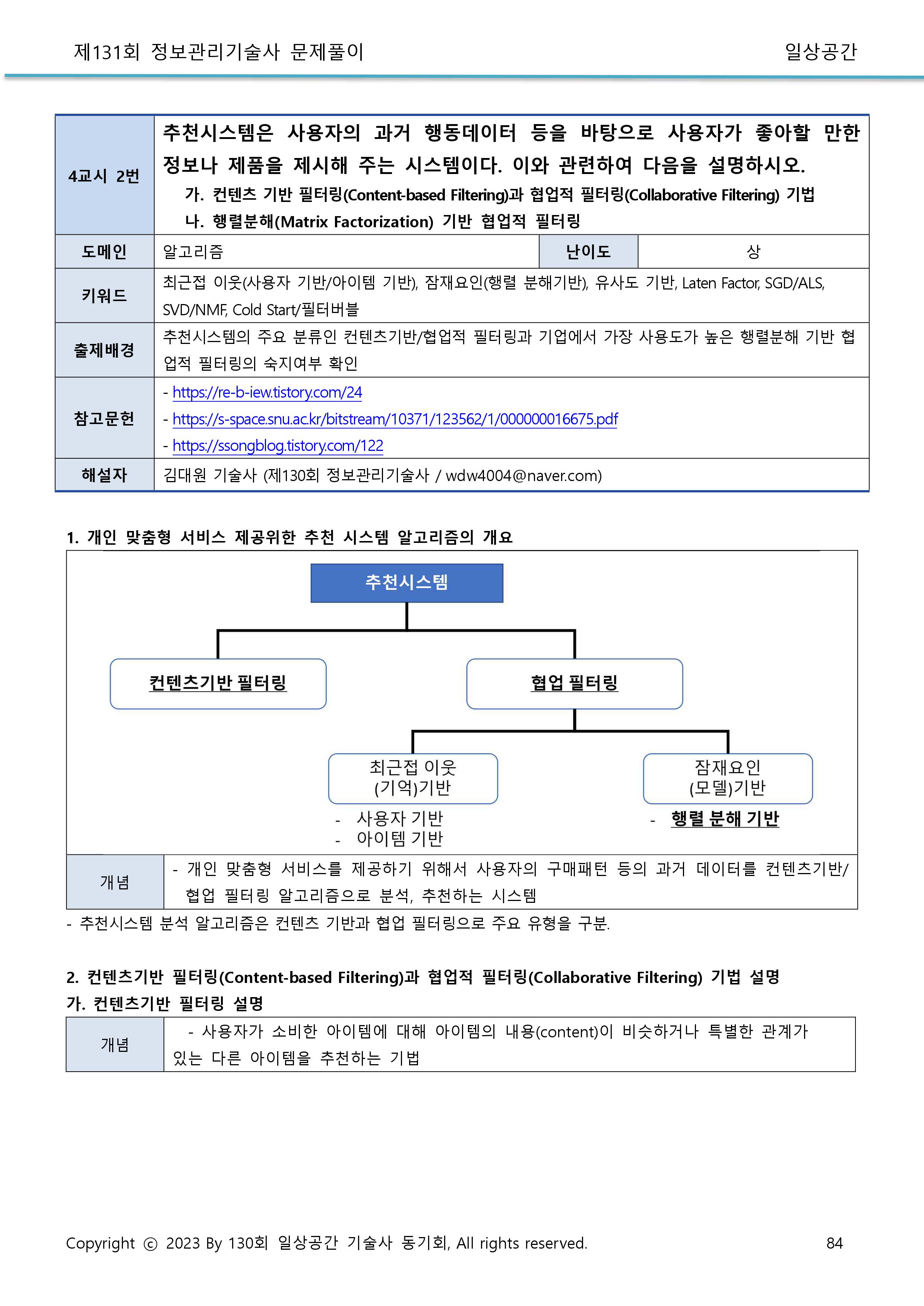 추천 엔진의 이해 1. 추천 시스템의 진화 2. 최근접 이웃 기반 추천 2. 1. 사용자 기반 협업 필터링 2. 2. 아이템 기반 협업 필터링 3. 콘텐츠 기반 추천 시스템 3. 1. 아이템 프로필 생성 3. 2. 사용자